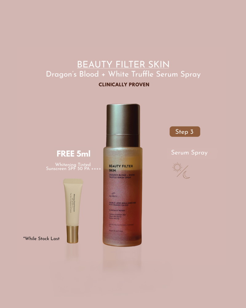 Dragon’s Blood + White Truffle SprayThe Skin CoGlowing skin | Fades dullness | Boosts collagen | Renews cells | Strengthens barrier | Controls tiny bumps & acneWith Rosehip Oil & Sunflower SeedNon-comedogenic | Fungal Acne Safe | Clinically Proven, 90ml