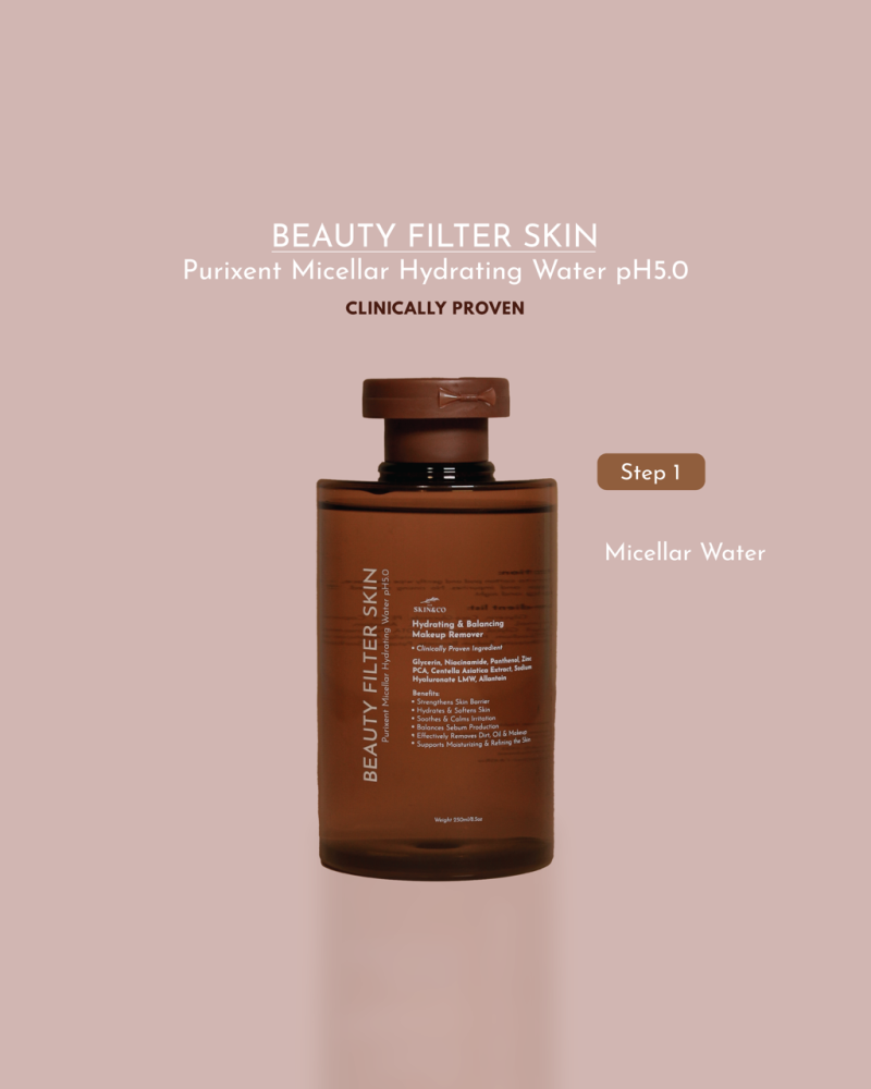MICELLAR WATER Purixent Hydrating Micellar Water pH5.0 The Skin Co. Pembersih Makeup Lembut & Seimbang | Kawal Minyak, Kurangkan Kemerahan & Kekalkan Kelembapan |Non-Comedogenic & Clinically Proven | Sesuai Untuk Semua Jenis Kulit | 250ml